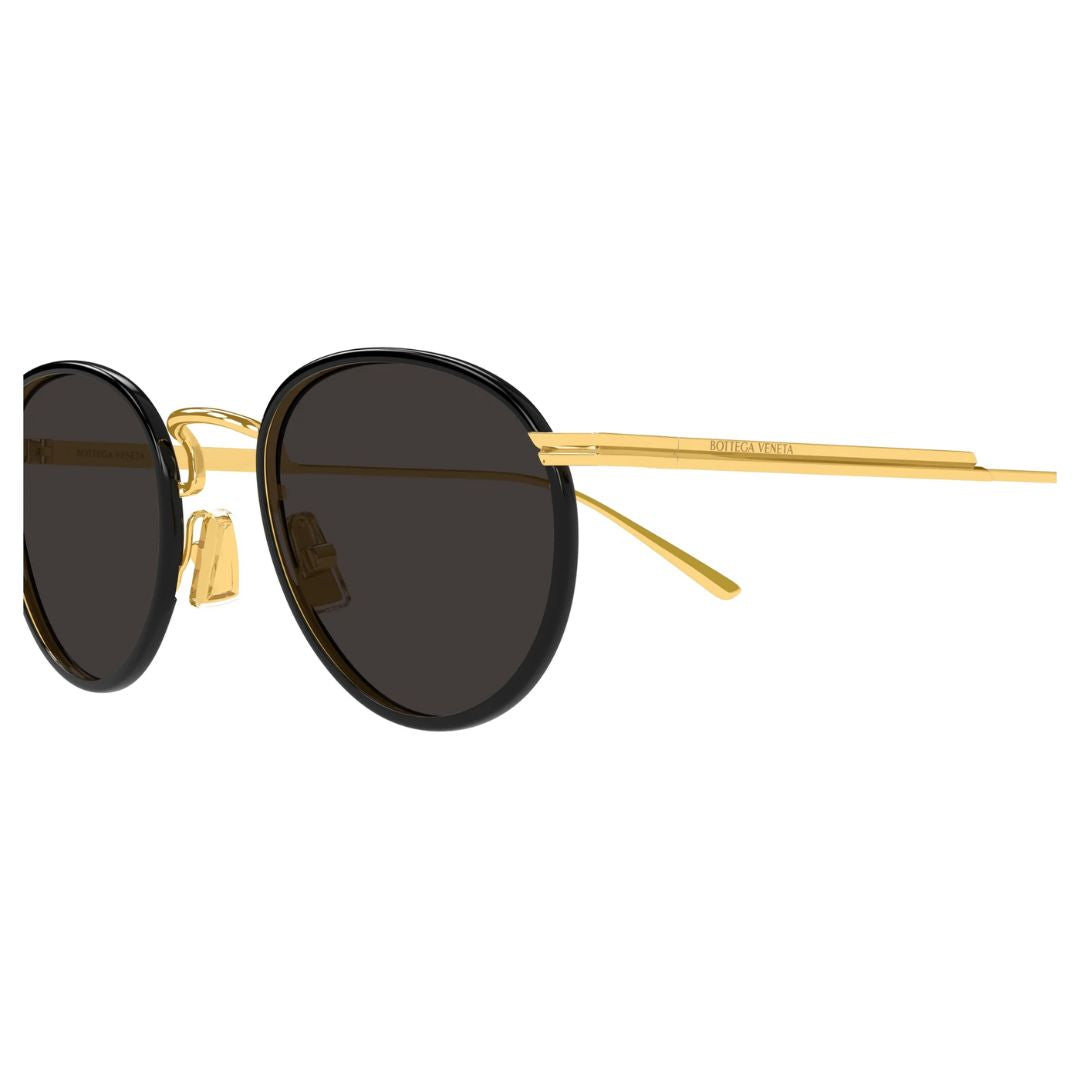 The BV1389S 001 sunglasses feature a refined round (panthos) silhouette with a luxurious gold metal frame paired with a contrasting black Windsor rim. The design blends minimalist elegance with modern detailing, completed by solid grey bio-nylon lenses for a sophisticated everyday look.