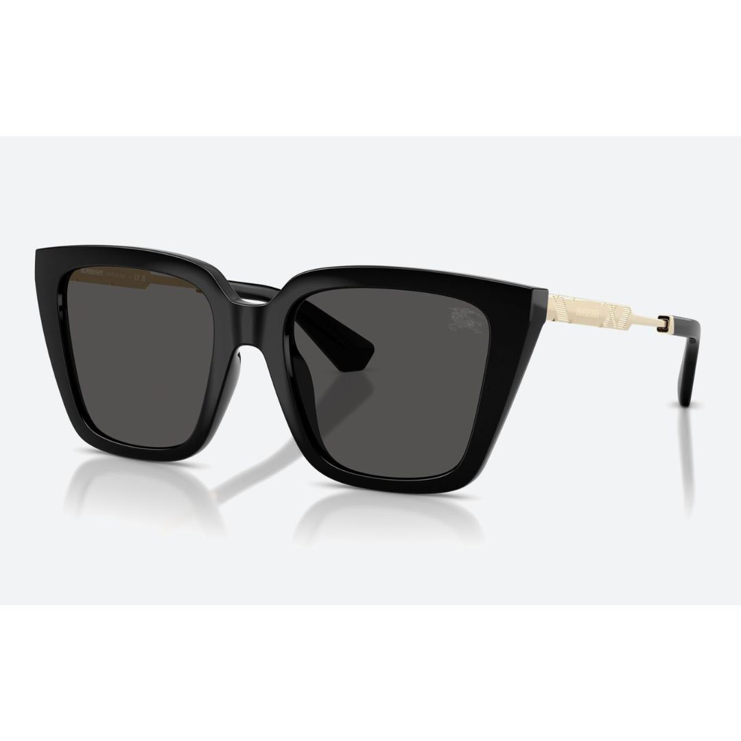 The Burberry BE4473U 3001/87 sunglasses combine classic British elegance with modern design. Featuring a bold square acetate frame in glossy black with subtle Burberry branding on the temples, these sunglasses offer both style and function. The dark grey lenses provide strong sun protection, making this pair perfect for everyday wear or elevated looks.