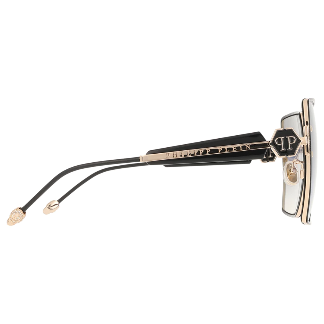 The Philipp Plein SPP122V 300 sunglasses exude bold elegance with a shiny rose gold metal frame and gradient brown mirror gold lenses. Designed for women, this square-shaped model combines high-fashion appeal with reliable UV protection and everyday comfort.