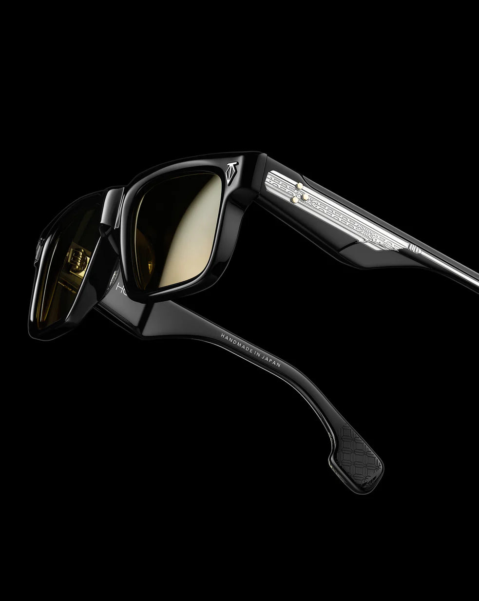 Full zyl acetate construction, utilizing a cotton extrusion method with custom complex coloration featuring 10mm hand-carved fronts with hypoallergenic nose pads.