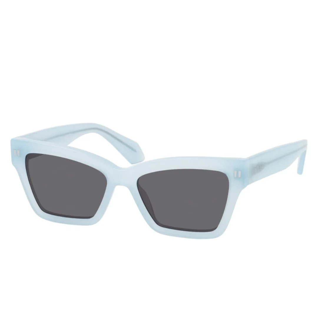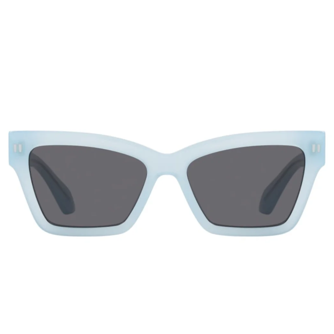 The Off-White OERI110 4007 sunglasses feature a bold cat-eye silhouette crafted from premium light blue acetate, paired with dark grey lenses. Reflecting Off-White’s signature blend of streetwear edge and luxury design, these frames make a confident and stylish statement.