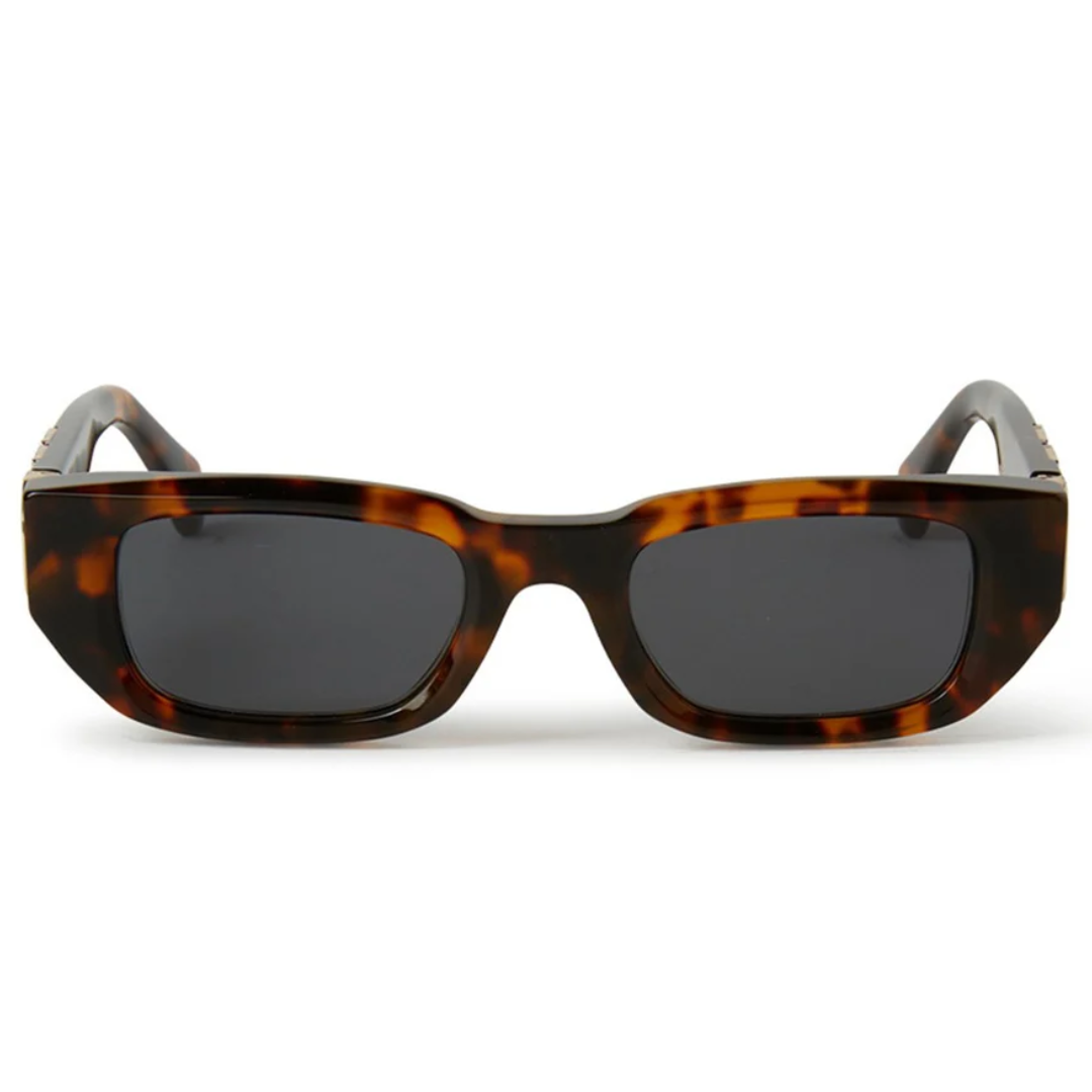 The Off-White OERI124 6007 sunglasses, also known as the Fillmore model, feature a rich Havana acetate frame paired with dark grey lenses. They perfectly combine Off-White’s urban aesthetic with timeless sophistication, making them a versatile statement piece for everyday wear.