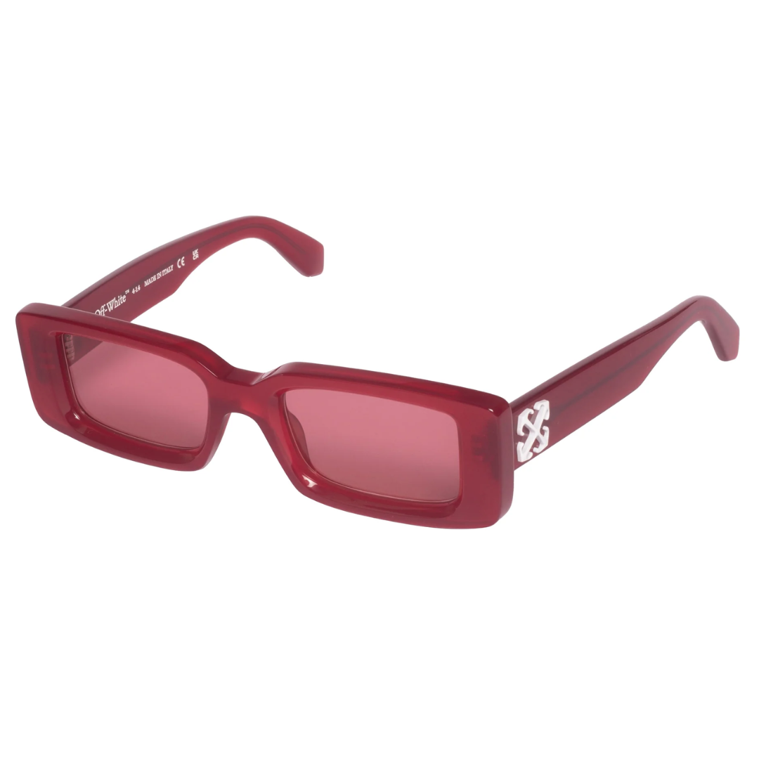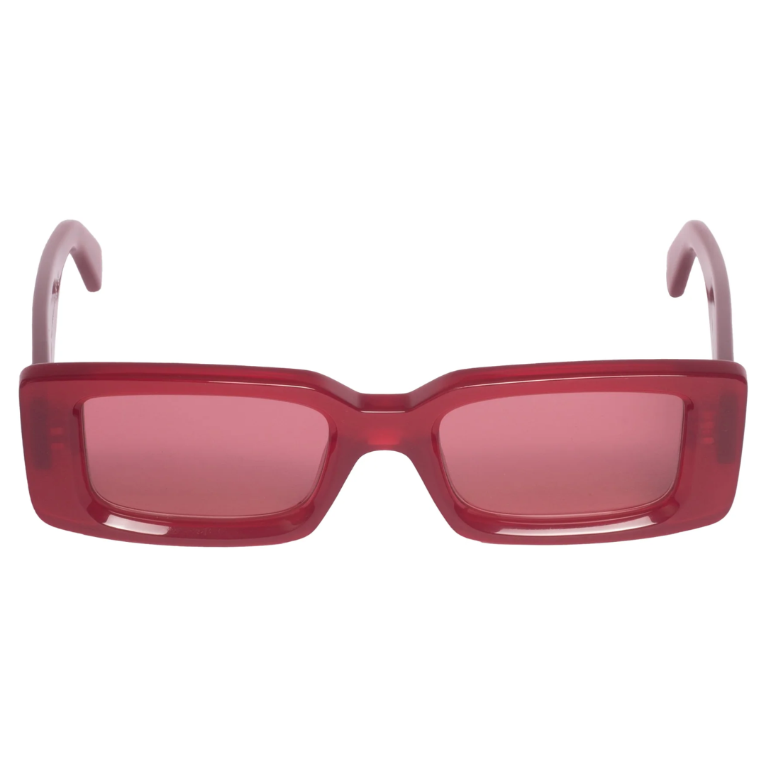 The Off-White OERI127 (Arthur) 2828 sunglasses feature a bold rectangular silhouette crafted from premium acetate in a striking burgundy tone. Blending Off-White’s distinctive streetwear aesthetic with luxury craftsmanship, these frames deliver contemporary style and everyday comfort.